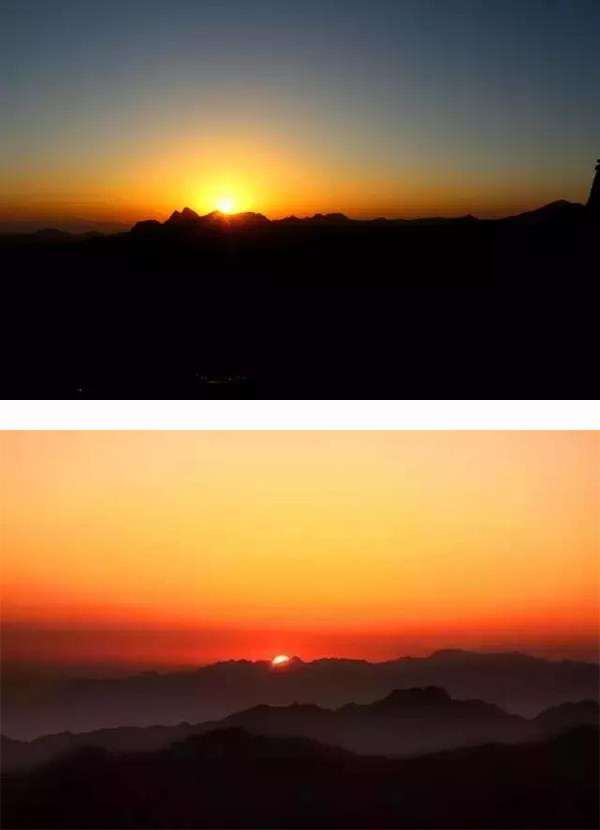 啊!青春的烈焰在升騰;新的生靈在震撼;歲月的車輪滾滾向前……該存在的難消失,該消失的存在難!天和地分了家,光明戰(zhàn)勝了黑暗。黑白交替,陰陽輪換!宇宙徹悟,氣象萬千。野草滾露,空氣新鮮;松濤簸香,山花爛漫;潮涌般的游客個個舒坦,猶如飽乳的嬰兒笑得甜甜。零晨三點,漆黑一團(tuán)。熙熙攘攘的游客擁向山路彎彎,歡聲笑語、呼喚吶喊、手電筒的光柱密密麻麻。萬萬千千織成縷縷金練,宛如“金龍盤山”!朝陽峰上熱鬧非凡。不是拜佛求仙,卻耐心等待!企盼一個輝煌時刻,猶如新生命噴紅分娩。一飽華山日出的壯觀!