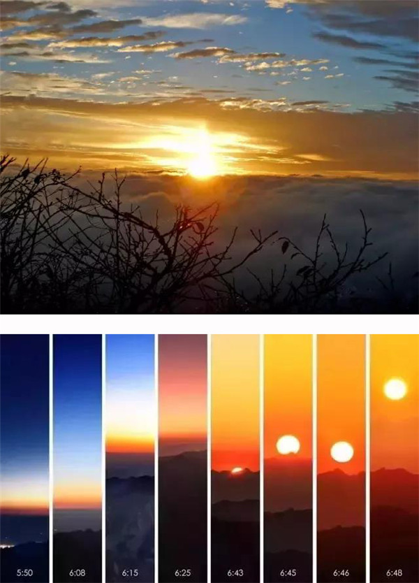 那管勞累氣喘;那管汗水蟄眼;那管步履艱難。疾步“金鎖關(guān)”,直上“三峰巔”!誰料黎明時分天氣變,風(fēng)吹烏云卷狂瀾!面對成功的一幕,緊捏一把汗。不看日出似乎寡淡,經(jīng)過激烈的廝殺,可喜的是天公降臨的“狂飆”啊,猶如英雄的東方赤子,敢向任何生命的敵人宣戰(zhàn)。