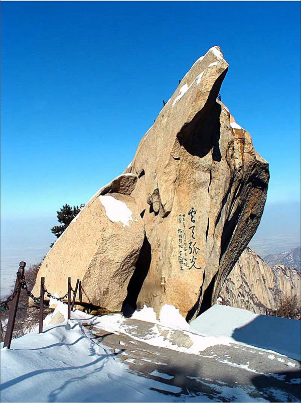 古人云:“山無石不奇,無純石不大奇”。華山之所以雄奇瑰偉,風姿獨具,首先就在于它的主體由一塊純粹完整的巨型花崗巖構(gòu)成。遠古時代的地質(zhì)造山運動,由巖漿冷凝形成的垂直節(jié)理的花崗巖體構(gòu)成了華山奇險俊秀的自然景觀。作為一塊“天然巨石”,萬千年來,華山緊緊依偎著秦嶺,成為秦嶺主脈一座特立獨行的花崗巖山。憑借大自然風云變幻的裝扮,華山的千姿萬態(tài)被有聲有色地勾畫出來。