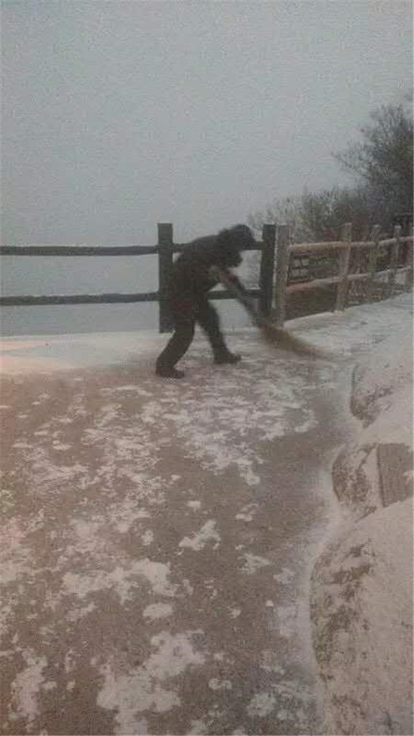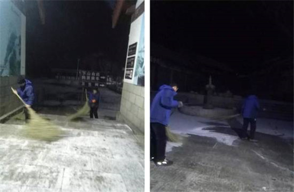 天還沒亮,主峰區(qū)的工作人員,分路段開始清掃積雪。