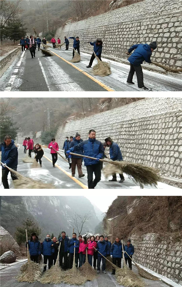 盤山公路上是進山交通車輛的必經(jīng)之地,清掃工作任務(wù)較重,但華山人熱情飽滿,齊心協(xié)力,全力以赴,確保道路的通暢。