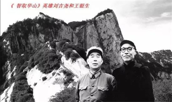 1949年6月,西北野戰(zhàn)軍解放了西安,當(dāng)華陰縣城解放時(shí),偽保六旅旅長韓子佩,帶一個(gè)警衛(wèi)營和旅直屬隊(duì)300余人逃到了華山上,企圖依靠華山天險(xiǎn)繼續(xù)同胡宗南聯(lián)系等待時(shí)機(jī),卷土重來。6月14日,中國人民解放軍大荔軍分區(qū)路東縱隊(duì)偵察參謀劉吉堯和六名偵察兵前往華山偵察道路。在當(dāng)?shù)叵驅(qū)蹉y生的帶領(lǐng)下,劉吉堯星夜帶領(lǐng)楊建東、路德才、孟俊甫、楊黨成、崔朝山、張自發(fā)等8勇士,到達(dá)猩猩溝盡頭。數(shù)百丈危崖聳立在面前,王銀生指著一個(gè)十丈高的黑洞說:“這是天井,我們就要從這里上去。”說著就把背著的大繩套在腰間,借著兩腿叉開的撐力,徐徐向上。10分鐘后,洞里放下來一根繩頭,7位偵察員依次被吊上天井。經(jīng)過一段險(xiǎn)坡后,前面又是一個(gè)高約15米的陡立石壑。王銀生施展他在山里采藥、打柴的本領(lǐng),借著一條石縫登上去,把繩子拴在一個(gè)木樁上,將其他同志吊上來。又向北行約1里便是“老虎口”,這是懸在絕壁上的一個(gè)崖歙,崖歙的上面伸出一個(gè)飛巖,下面是傾斜的滑坡,坡下便是一眼望不到底的萬丈深淵。這時(shí)候只要雙腿發(fā)軟,就會(huì)滑下去,尸骨無存。戰(zhàn)士們只能借著腰肢和肩膀的上下?lián)瘟Γ孟褚粋€(gè)木楔子似的慢慢通過。在漆黑的夜里,他們又下滑輾轉(zhuǎn)500多米,才到達(dá)北峰腳下。