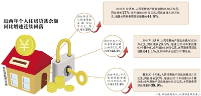 2018年全年房地產(chǎn)貸款增加6.45萬億元,占同期各項貸款增量的39.9%,比2017年占比低1.2個百分點