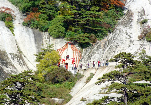 相傳秦穆公的女兒弄玉與居住在華山明星崖的吹簫人蕭史相愛(ài)后,練習(xí)辟谷之法,乘龍跨鳳,騰空來(lái)至華山,鑿洞成婚并得道成仙,“洞房”一詞也是源于此。情侶們來(lái)到這里拍照留念,也是對(duì)婚姻的一種向往。