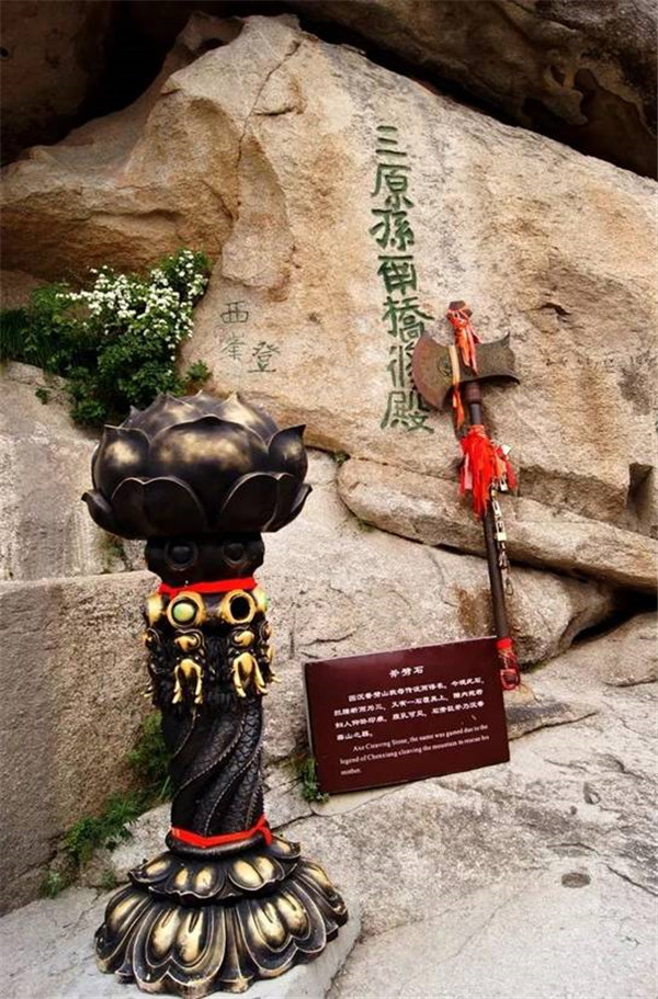 《寶蓮燈》故事的發(fā)生地,華山西峰之巔的斧劈石、開(kāi)山神斧成為三圣母、劉彥昌堅(jiān)貞愛(ài)情的歷史見(jiàn)證。在西峰情侶們可以深切的感受愛(ài)情的力量,親情的偉大。