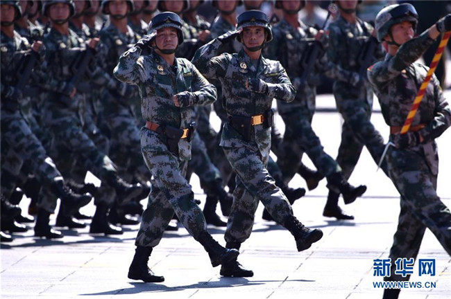 2015年9月3日,中國(guó)人民抗日戰(zhàn)爭(zhēng)暨世界反法西斯戰(zhàn)爭(zhēng)勝利70周年紀(jì)念大會(huì)在北京隆重舉行。這是徒步方隊(duì)通過天安門廣場(chǎng)。新華社記者龐興雷攝