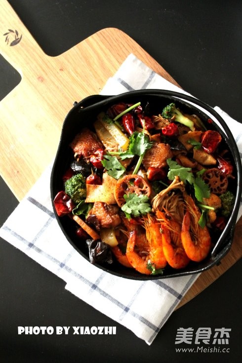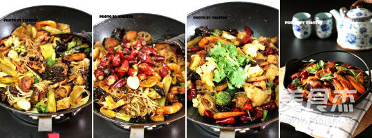 “好多人都愛麻辣香鍋,愛到把自己的網名兒都改成麻辣香鍋,真是有意思,說吃就吃,隨時滿足自己作為一名吃貨的強烈欲望,還是學學吧,現在有了現成的調料,做起來其實并不難,基本底料就用海底撈麻辣香鍋的料就可以了,其他自己再加以調味,使味道變得更加飽滿。還有就是菜品的處理,該過油的過油,該焯水的焯水,最后統(tǒng)統(tǒng)扔鍋里一炒,大功告成,妥妥地OK啦!”