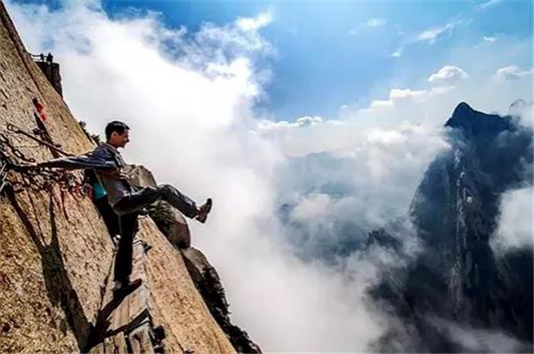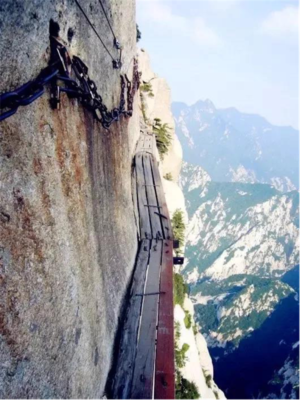 我站在華山兩塊窄窄的木板上,依靠鐵釘楔入巖石作為支撐,我的腳下,是1000米的深谷,冰雪的路面很滑。我來華山旅游純粹是因?yàn)樵诨ヂ?lián)網(wǎng)上瘋傳的一張圖片,也就是指“世界上最危險(xiǎn)的登山路”那張?,F(xiàn)在有了安全保護(hù)措施,實(shí)際上用不著擔(dān)心危險(xiǎn)了。恐懼慢慢涌上心頭,頭腦變得有些麻木。西安是中國的古城,在強(qiáng)盛朝代時(shí)期占有重要的歷史地位。