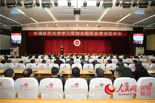 3月17日上午,新疆醫(yī)科大學會議廳內座無虛席,4位出席十三屆全國人大二次會議的新疆全國人大代表返回烏魯木齊后,第一時間在新疆醫(yī)科大學開展全國兩會精神宣講。