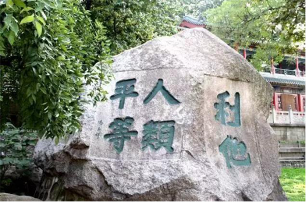 康有為曾寫詩(shī)贊美道:“谷口清泉引曲流,長(zhǎng)廊迴醫(yī)樹無(wú)憂。泉水岳色可忘出,讓與希夷睡萬(wàn)秋。”