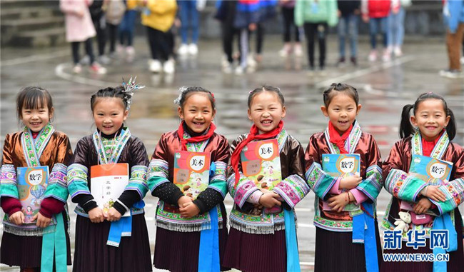 進(jìn)入二十一世紀(jì),隨著我國(guó)義務(wù)教育的普及和農(nóng)村義務(wù)教育學(xué)生營(yíng)養(yǎng)改善計(jì)劃等一系列教育惠民政策的落實(shí),當(dāng)?shù)攸h委政府大力改善學(xué)校辦學(xué)條件,完善教育精準(zhǔn)資助體系,保障學(xué)生特別是適齡女童能夠充分接受良好的教育。目前,適齡女童的入學(xué)率已經(jīng)超過(guò)99%,“狗不耕田,女不讀書”的傳統(tǒng)觀念得到徹底改變,越來(lái)越多的苗山適齡女童得以通過(guò)接受良好的教育實(shí)現(xiàn)自己的夢(mèng)想。新華社記者 黃孝邦 攝