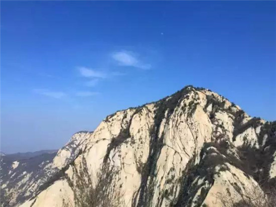 量掌山雖矮于華山主峰,但山峰險(xiǎn)峻,危崖聳立,崖體裸露呈赭色,巖石皴理異常美麗,其造化之妙如出畫家之手。尤其是在陽(yáng)光照耀下,更加燦爛輝煌,雄奇壯觀。攀登量掌山的道路非常險(xiǎn)峻,古時(shí)除一些羽林高手外,很少有人登峰。