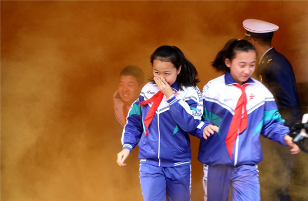 消防員組織師生開展了火災(zāi)逃生體驗(yàn)。