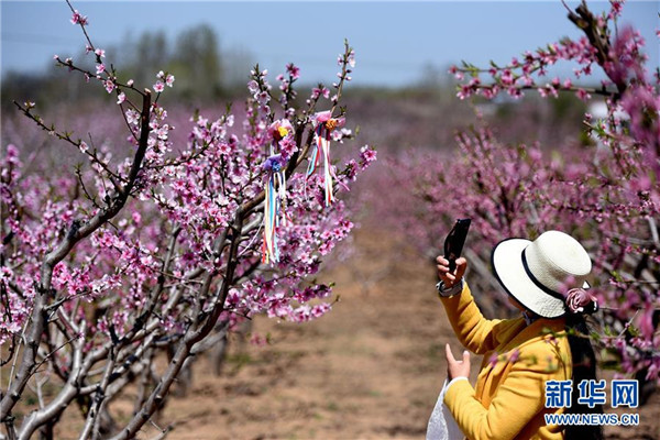 仲春時節(jié),山東省臨沂市郯城縣馬頭鎮(zhèn)“農家花園”里桃花正艷,吸引游客前來踏青賞花。近年來,郯城縣農民通過流轉土地、復耕開發(fā)等形式創(chuàng)辦多個集賞花采摘、旅游觀光、休閑娛樂為一體的花園式農場,帶動當地鄉(xiāng)村旅游發(fā)展。