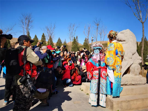 上午眾多攝影愛好者們齊聚蒲城泰陵景區(qū)大唐梨園廣場,進(jìn)行以戲曲表演為主題一場的拍攝……