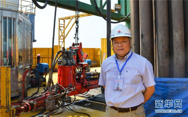 黃大年在松遼盆地大陸科學鉆探2號井現(xiàn)場(2014年8月8日攝)。新華社發(fā)