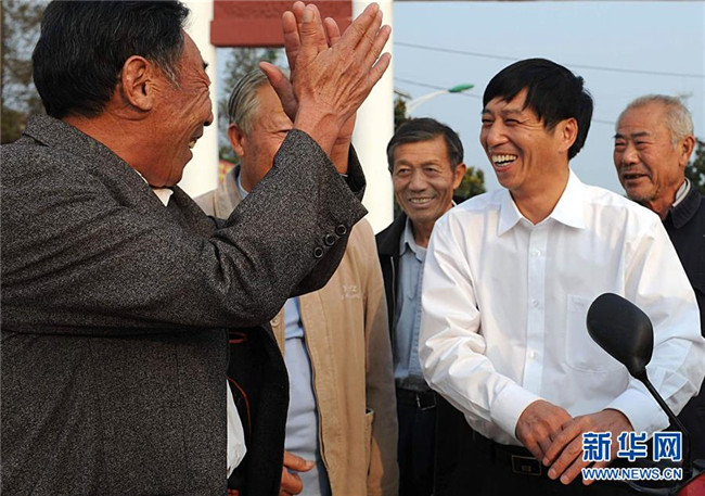 這是2008年10月7日,沈浩(前右)與大包干帶頭人關(guān)友江、嚴俊昌、嚴金昌、嚴學昌交流小崗村的改革發(fā)展情況。新華社記者 王雷 攝