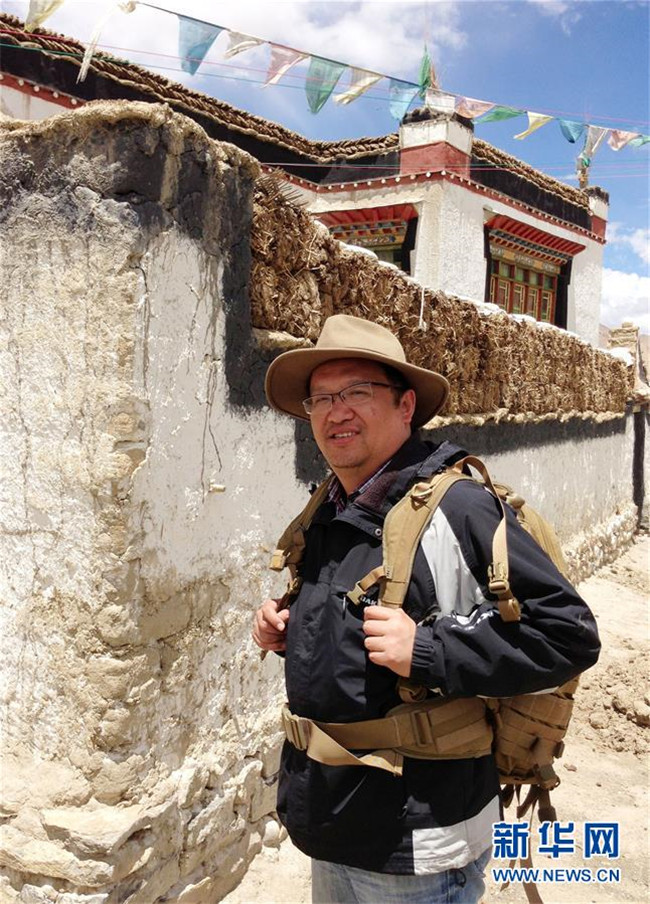 復旦大學教授鐘揚在西藏日喀則進行植物采樣期間留影(2013年8月4日攝)。新華社發(fā)(馮艾 攝)