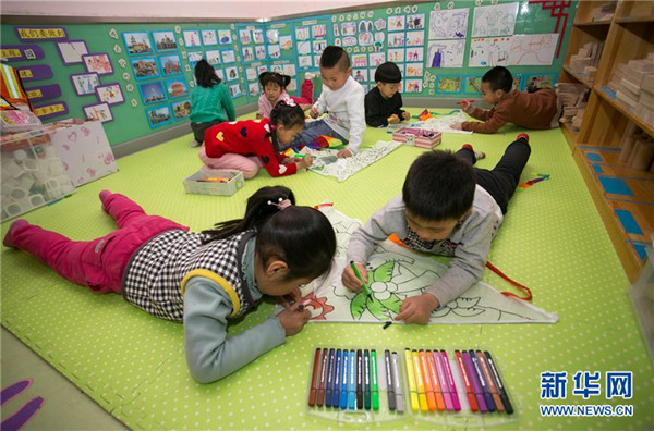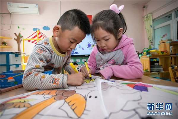 4月1日,門頭溝區(qū)妙峰山民族學(xué)校附屬幼兒園小朋友們?cè)诋嬶L(fēng)箏。新華社發(fā)(侯繼慶 攝)