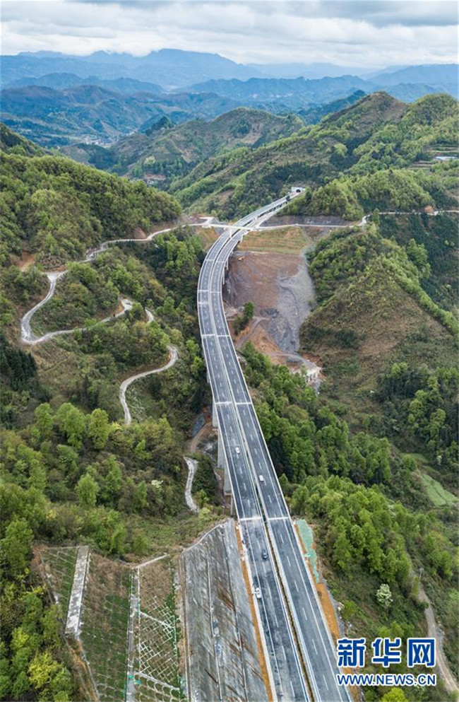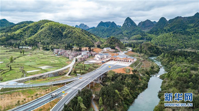4月3日無人機(jī)拍攝的三荔高速水各至荔波東路段。 新華社記者 陶亮 攝