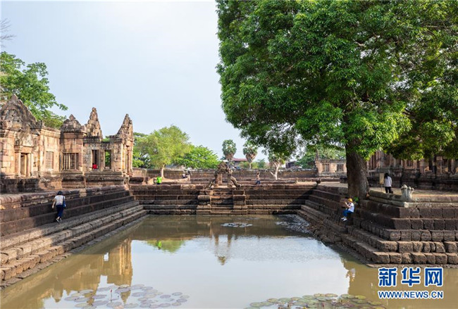 4月5日,游客參觀泰國武里南府低城寺。 一年一度的“登帕儂隆山節(jié)”在泰國東北部毗鄰柬埔寨的武里南府帕儂隆山舉辦。當?shù)厝艘怨叛b巡游展示獨特的傳統(tǒng)文化,希望能吸引更多外國游客、促進當?shù)芈糜螛I(yè)發(fā)展。 新華社記者 張可任 攝