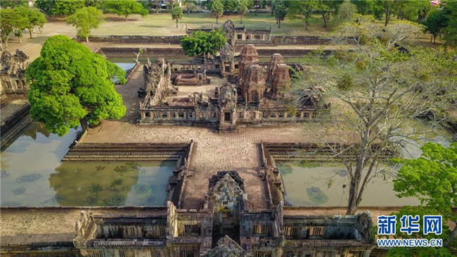 這是4月5日航拍的泰國武里南府低城寺。 一年一度的“登帕儂隆山節(jié)”在泰國東北部毗鄰柬埔寨的武里南府帕儂隆山舉辦。當?shù)厝艘怨叛b巡游展示獨特的傳統(tǒng)文化,希望能吸引更多外國游客、促進當?shù)芈糜螛I(yè)發(fā)展。 新華社記者 張可任 攝