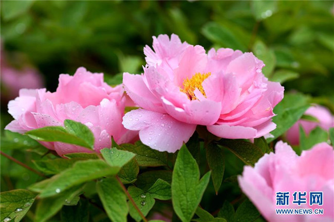 這是在石家莊市正定榮國(guó)府影視基地拍攝的牡丹花(4月13日攝)。時(shí)下,河北石家莊正定榮國(guó)府影視基地內(nèi)的牡丹花次第開(kāi)放,在春雨的滋潤(rùn)下顯得格外晶瑩剔透、美麗嬌艷。 新華社發(fā)(陳其保 攝)