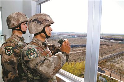 連隊(duì)官兵在哨樓上執(zhí)勤。