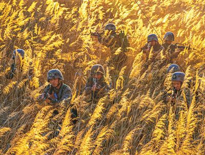 官兵在復(fù)雜地域開展戰(zhàn)術(shù)訓(xùn)練。