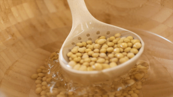 2.開小火炒20分鐘左右至豆香四溢。將炒好的黃豆倒入碗中自然冷卻。(炒過的黃豆出鍋時,小心燙手。)