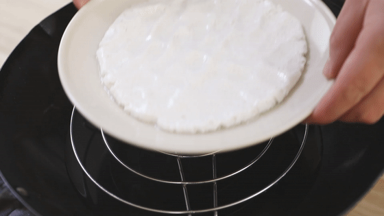 12.蒸好的糯米面要用保鮮膜蒙住盤子,防止表面變干,晾至溫熱。