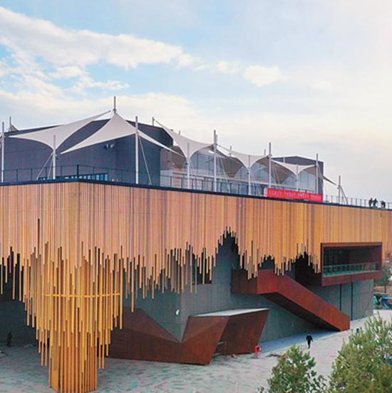 植物館外面褐色的鋼管象征著植物的根系。人民日報記者賀勇攝
