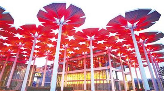 由94把巨大鋼“花傘”構(gòu)成的國際館,宛如一片絢爛的“花海”。人民日報記者賀勇攝