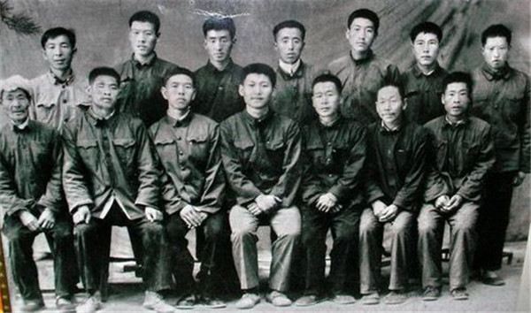 送習近平上大學時,梁家河村民和習近平的合影(前排中為習近平)