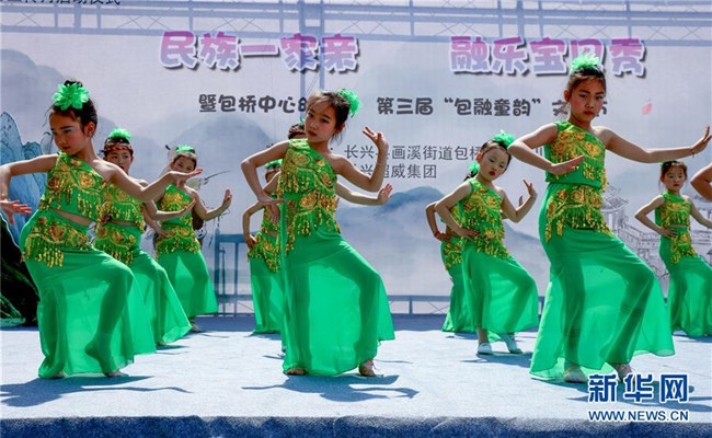 當日,浙江省長興縣包橋幼兒園舉辦“民族一家親”活動,師生家長一同表演舞蹈,展示民族服裝,迎接即將到來的“六一”兒童節(jié)。據(jù)悉,該幼兒園一半以上的孩子來自省外,其中不少是少數(shù)民族兒童。 新華社記者 徐昱 攝