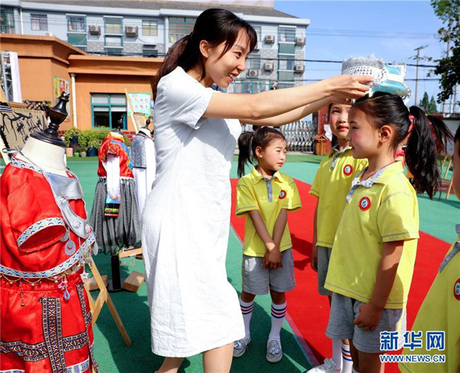 5月28日,老師帶領孩子們認識不同民族的服飾。