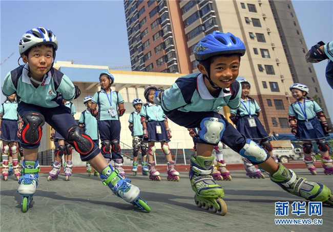 去年以來,河北唐山遵化市第六實(shí)驗(yàn)小學(xué)把輪滑運(yùn)動(dòng)作為特色社團(tuán)活動(dòng)引進(jìn)校園,成立了輪滑訓(xùn)練隊(duì),聘請專職教練指導(dǎo)學(xué)生練習(xí),激發(fā)了學(xué)生們對運(yùn)動(dòng)的熱情,也強(qiáng)健了他們的體魄。 新華社發(fā)(劉滿倉 攝)