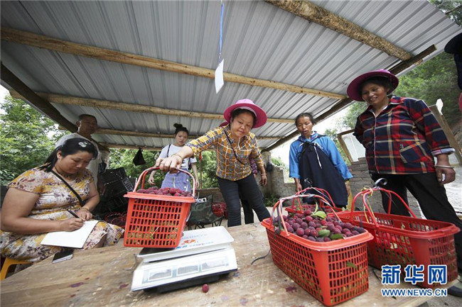 6月15日,在丹寨縣揚(yáng)武鎮(zhèn)老冬村楊梅種植園,果農(nóng)在給采摘好的楊梅稱(chēng)重。新華社發(fā)(黃曉海 攝)