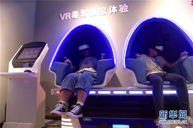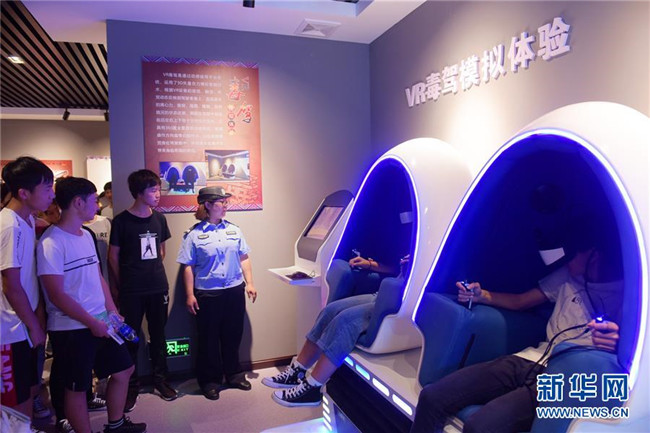 6月26日,在湖北省宣恩縣未成年人法治教育和禁毒警示教育基地,學生通過虛擬現實設備,了解吸毒駕駛的危害。新華社發(fā)(王俊攝)
