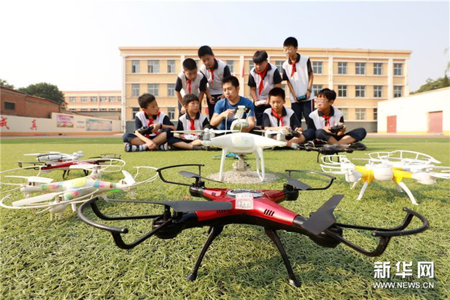 6月26日,內(nèi)丘縣實(shí)驗(yàn)小學(xué)學(xué)生在參加無(wú)人機(jī)特色課程。新華社記者 朱旭東 攝