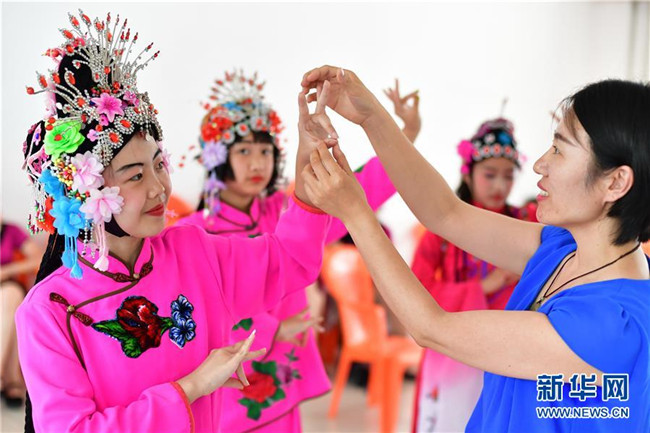 7月16日,小朋友們在灤州市自強里社區(qū)活動室學習評劇。 新華社記者 牟宇 攝