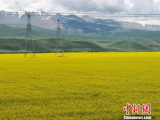 七月盛夏,甘肅祁連山雪頂銀裝素裹,山下萬畝油菜花競(jìng)相開放,如一片望不到邊的金色海洋,二者交相輝映,美如畫卷。