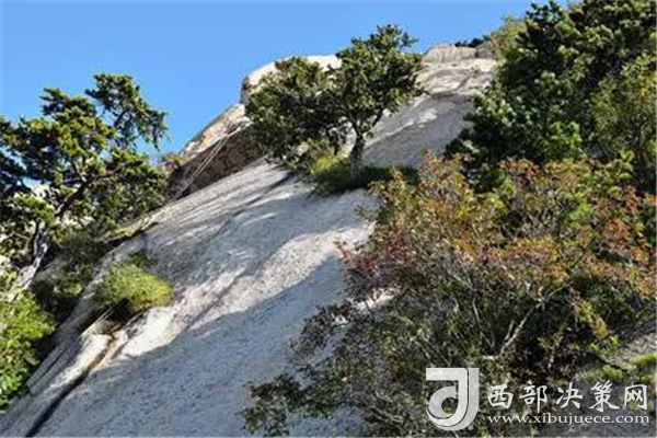 在華山北峰,過千尺幢經(jīng)百尺峽,就到了北峰最著名的老君犁溝。這里最為吸引人的,除卻“犁險于幢,幢險而犁突”的殊勝景觀,除卻老君犁溝盡頭陡峭到連山猴都難以逾越的“猢猻愁”,光是崖壁下一口幽深的石洞,就足以讓四海游人紛至沓來。足蹬石窩手?jǐn)堣F索攀上石頂,再走過一個獨木橋就到了山洞口。