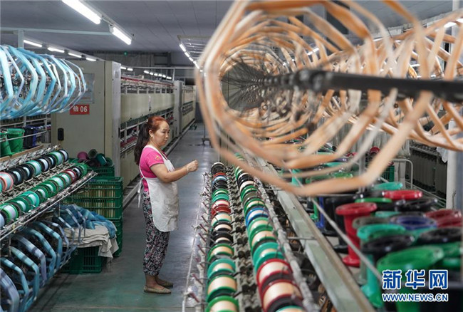 工人在安康市石泉縣陜西天成絲業(yè)有限公司生產(chǎn)車間內工作(8月7日攝)。新華社記者 邵瑞 攝