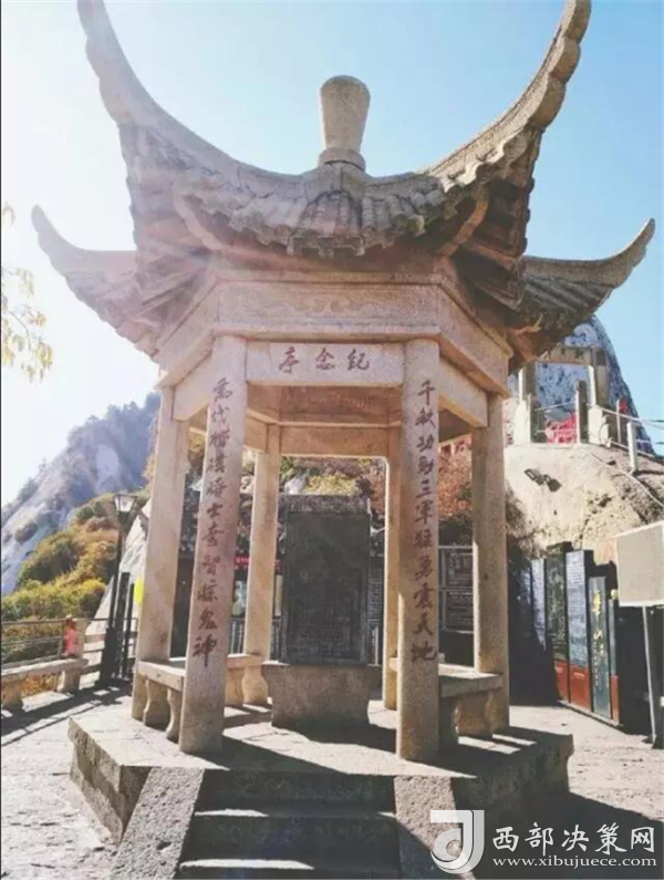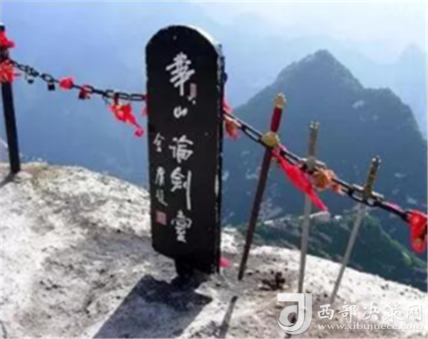 說到北峰,不可不提的自然是華山論劍了,在峰頂有一塊石牌,上面是金庸先生親筆題寫的“華山論劍”,此處也成為游客登臨華山必到之處。