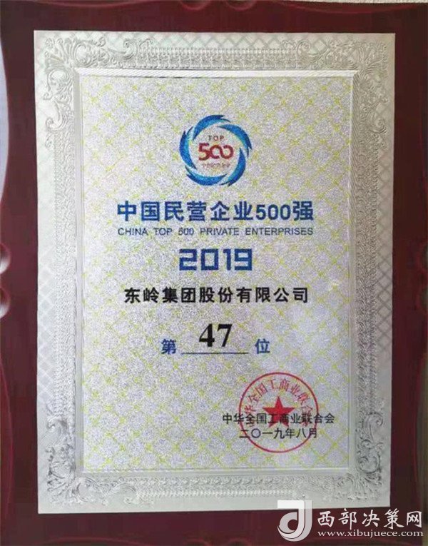 8月22日上午,由全國工商聯(lián)、青海省人民政府共同舉辦2019中國民營企業(yè)500強峰會在青海召開。東嶺集團位列2019中國民營企業(yè)500強第47位,名列陜西省民營企業(yè)第一,這也是東嶺集團連續(xù)18年榜上有名!同時,東嶺集團還位列2019中國民營企業(yè)服務(wù)業(yè)100強第17位。
