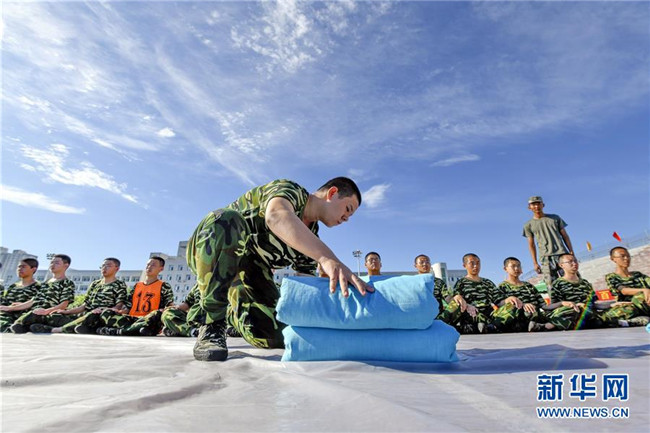 8月25日,河北省遵化市第一中學學生進行內務整理訓練。新華社記者 牟宇 攝