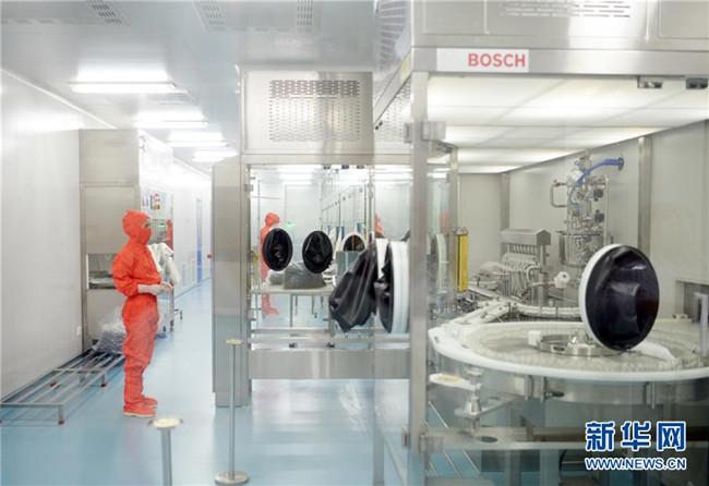 吉林敖東藥業(yè)集團(tuán)延吉股份有限公司燈檢線操作工朱秀芳在操作全自動凍干粉針偵檢機(jī)(8月22日攝)。新華社發(fā)