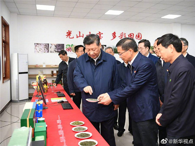 習(xí)近平總書記17日上午前往河南省光山縣司馬光油茶園和文殊鄉(xiāng)東岳村,考察調(diào)研當?shù)孛撠毠怨ぷ鞒尚Ш椭修k在光山縣扶貧工作情況,看望慰問老區(qū)群眾。(文字記者:張曉松、朱基釵 攝影記者:鞠鵬、謝環(huán)馳)