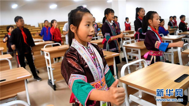 這是廣西三江侗族自治縣江川小學(xué)學(xué)生在學(xué)唱侗戲(10月14日攝)。 新華社記者張愛林?jǐn)z
